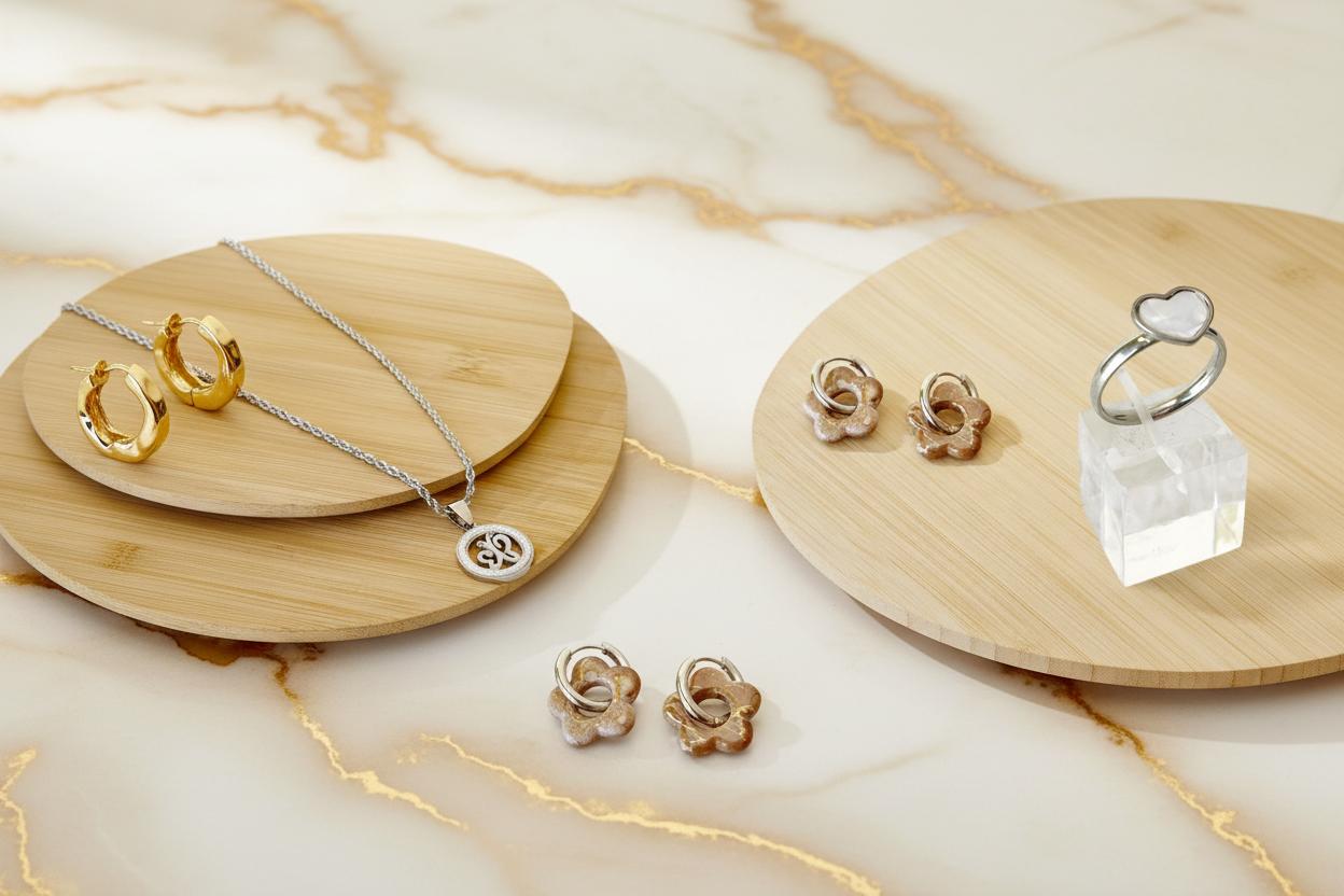 Conjunto de Acero Quirúrgico y Piedra Natural Ojo de Gato