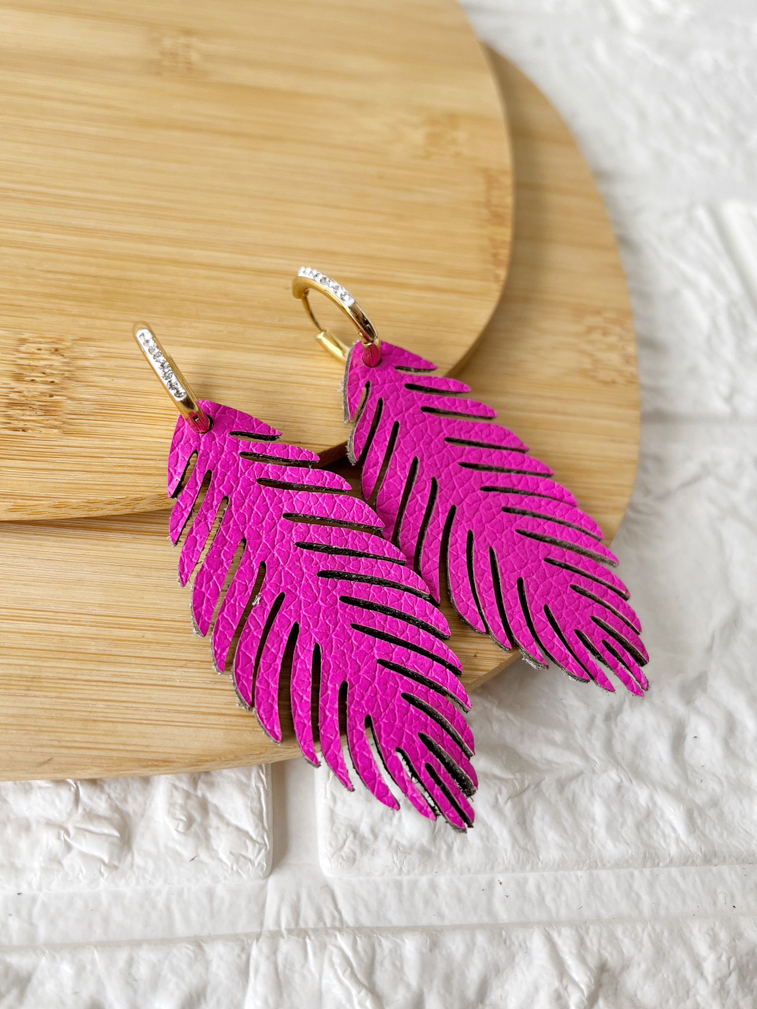 Caravanas de Acero Quirúrgico y Cuero modelo hoja.