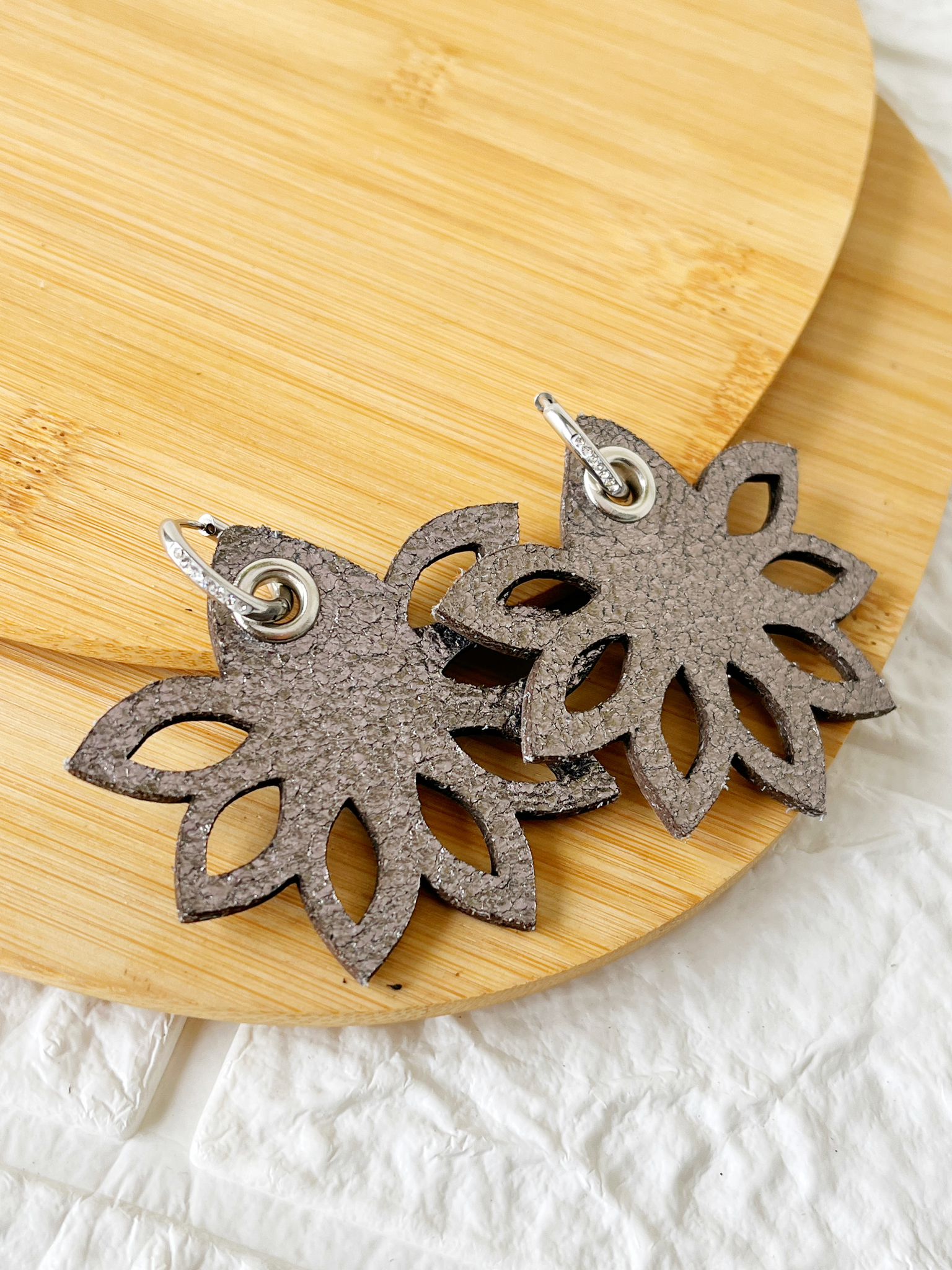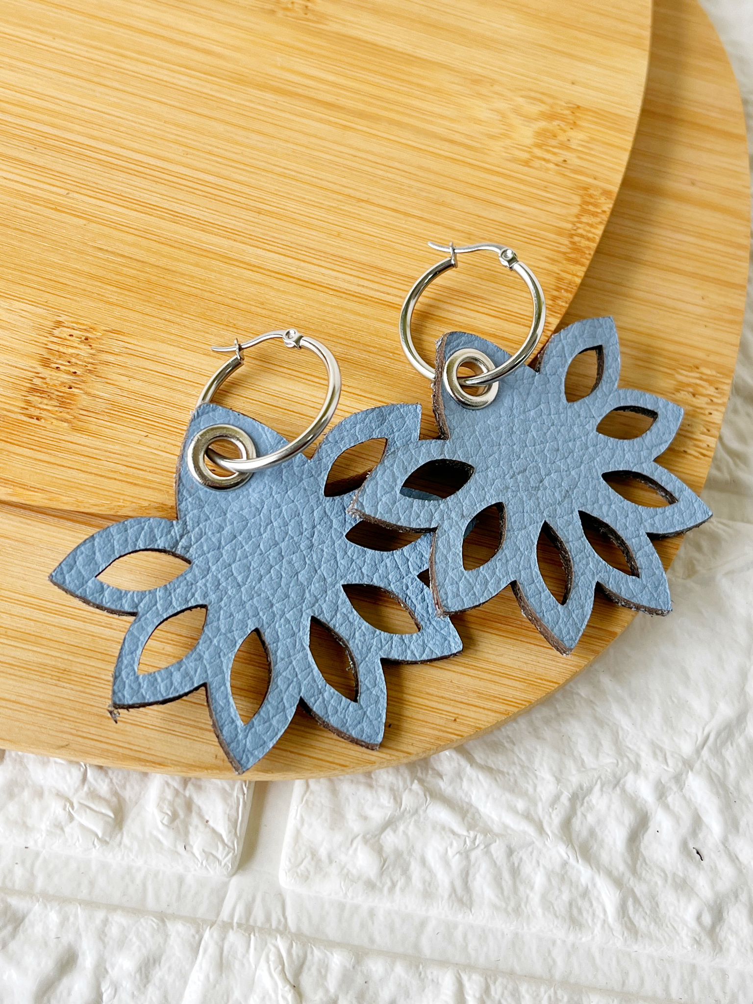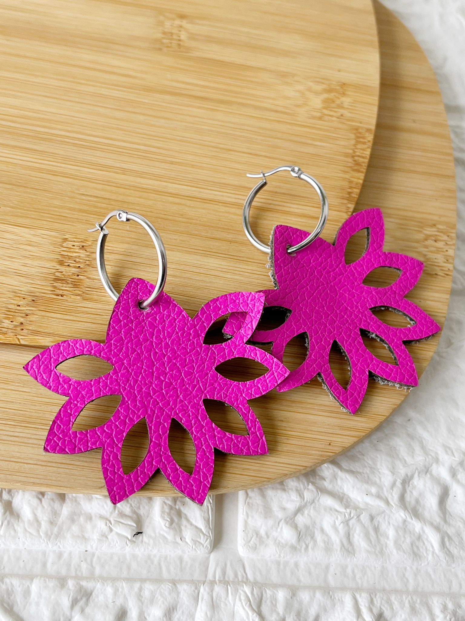 Caravanas de Acero Quirúrgico y Cuero modelo flor.