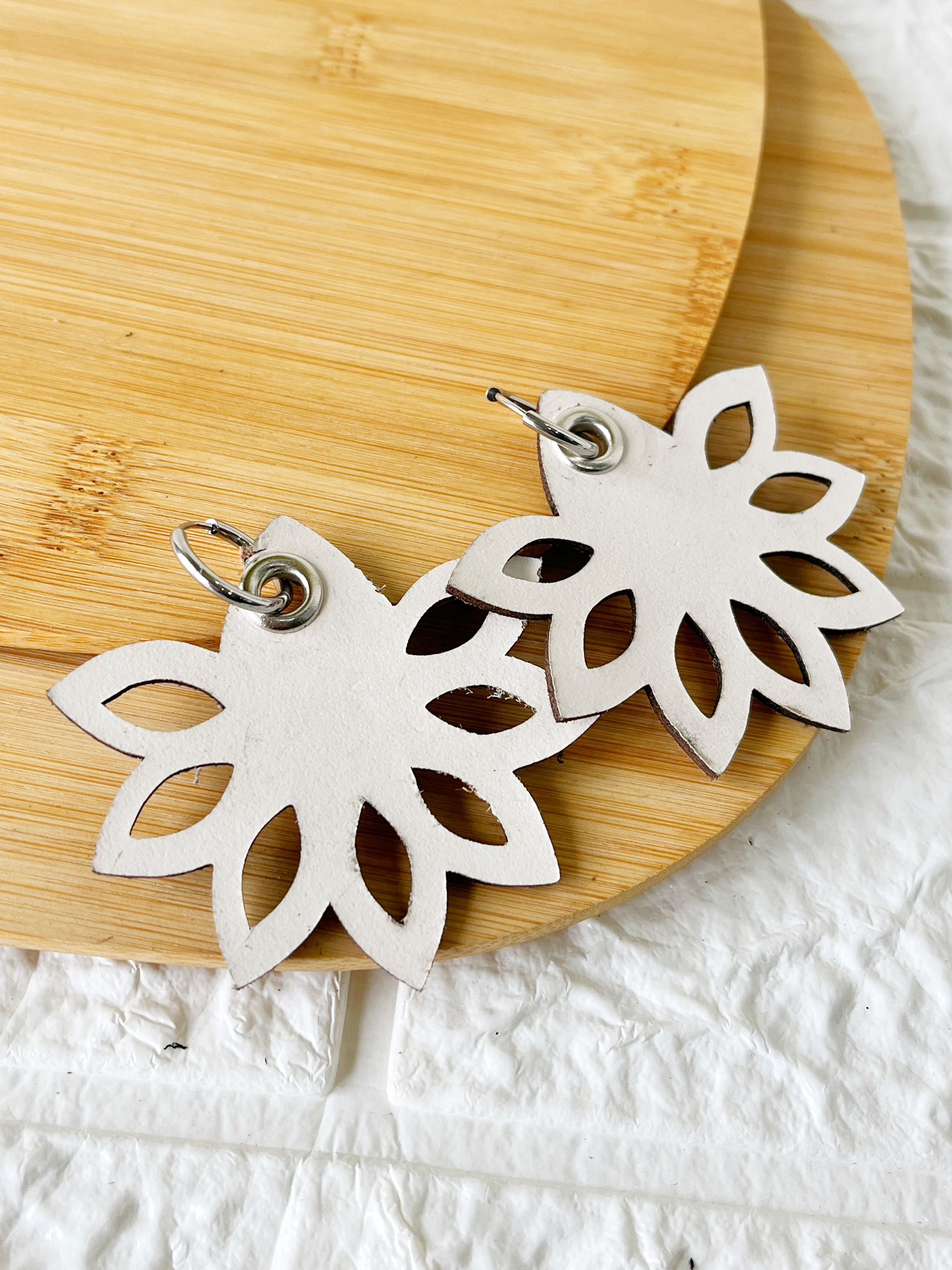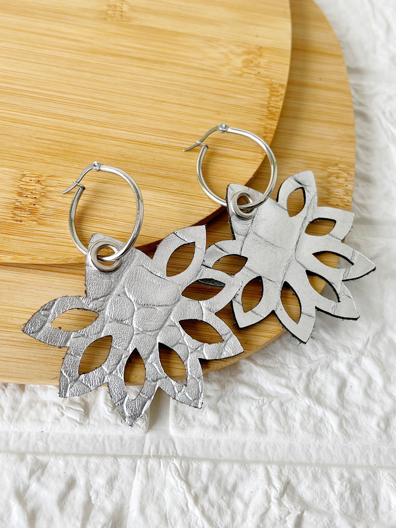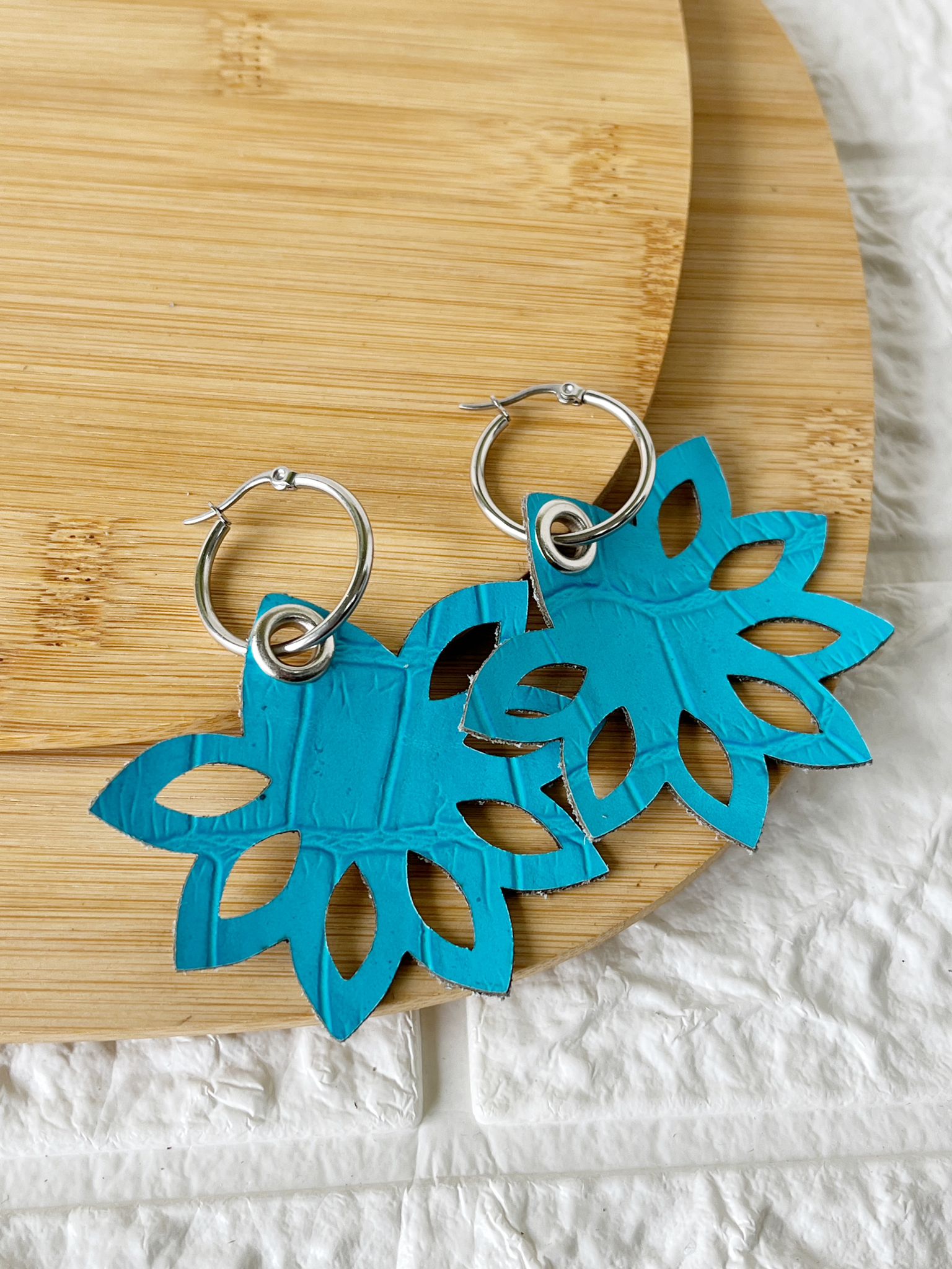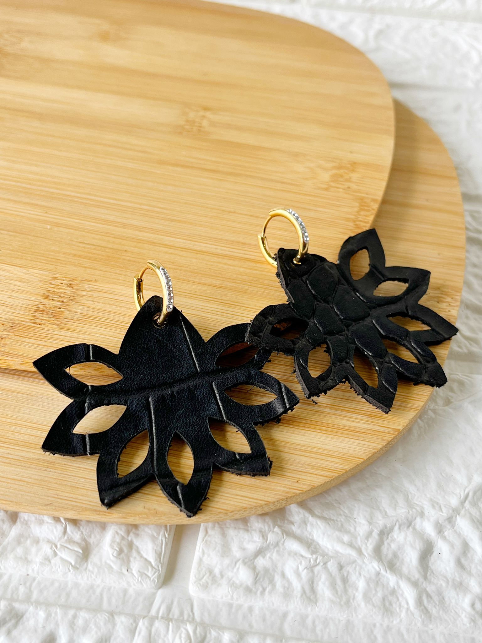 Caravanas de Acero Quirúrgico y Cuero modelo flor.