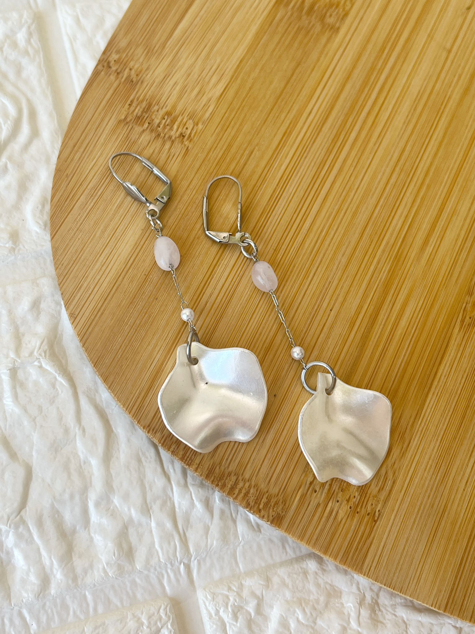 Caravanas de acero quirúrgico y Piedra Natural Cuarzo Rosa.
