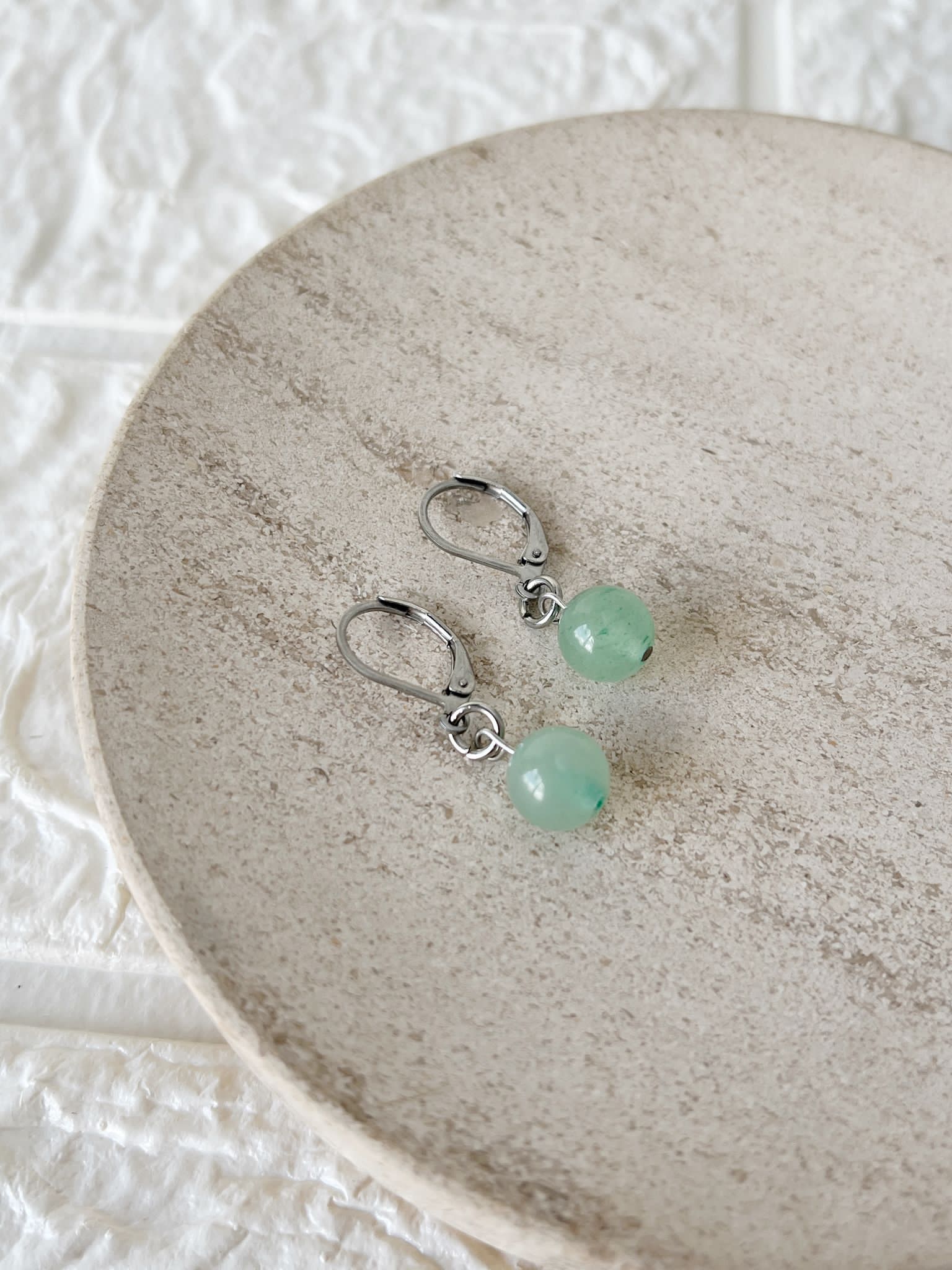 Caravanas de Acero Quirúrgico y Piedra Natural Cuarzo Verde.
