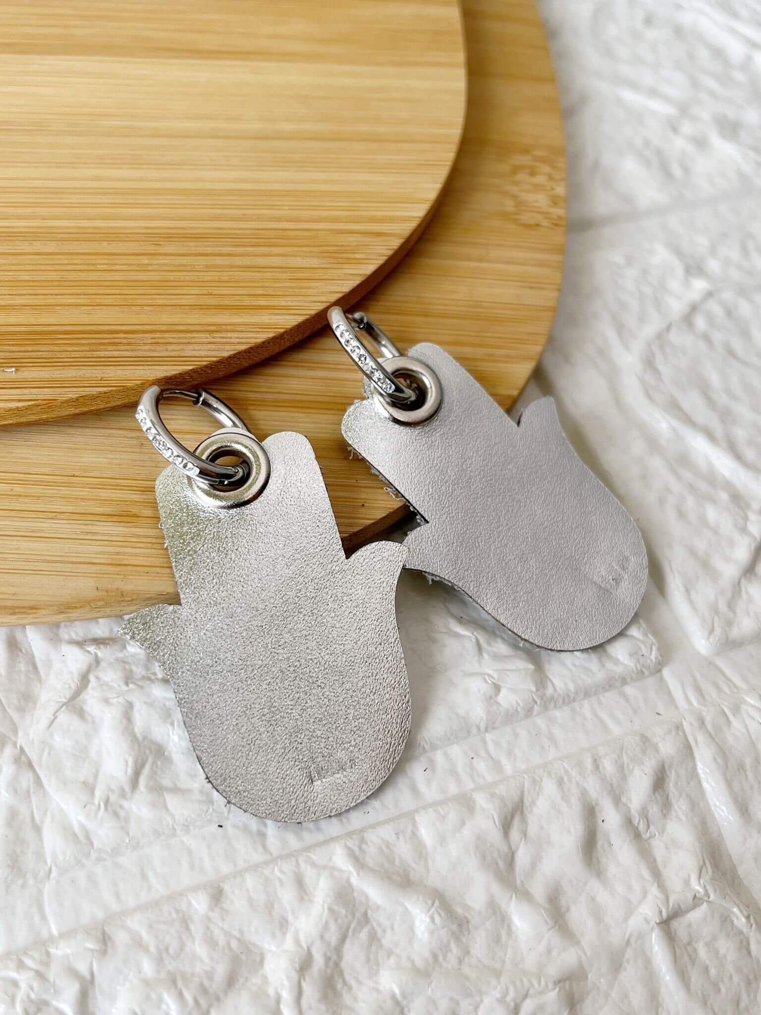 Caravanas de Acero y Cuero modelo Mano de Fátima (o Hamsa).