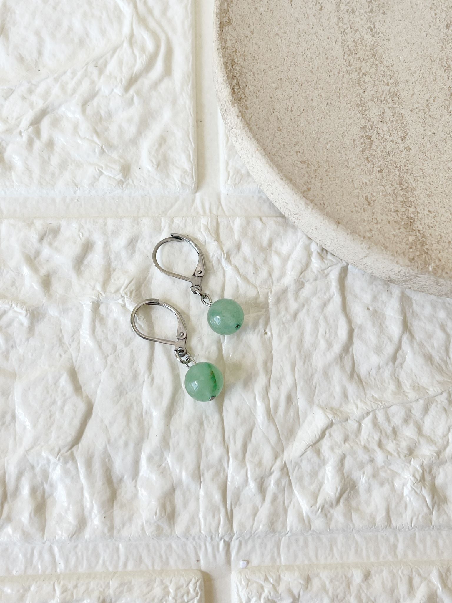 Caravanas de acero quirúrgico y piedra natural cuarzo verde.