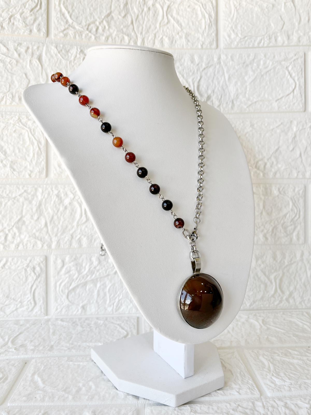 Collar de Acero Quirúrgico, Piedra Natural Ágata y Cornalina.