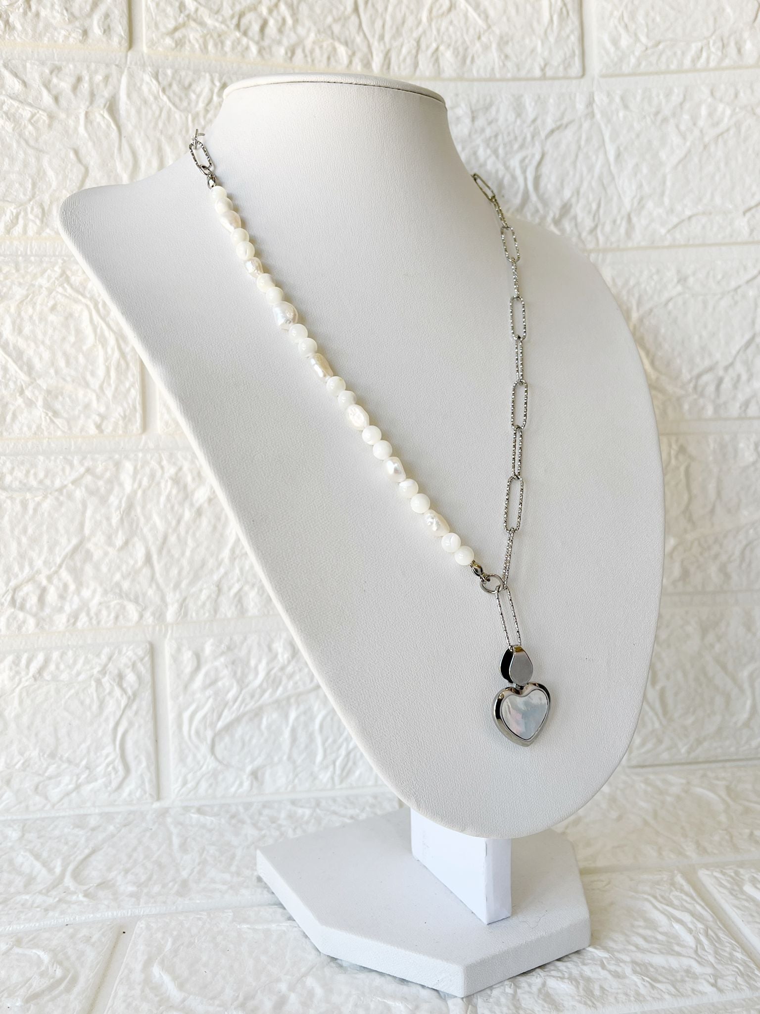 Modelo Collar de Acero Quirúrgico y dije corazón Nácar.