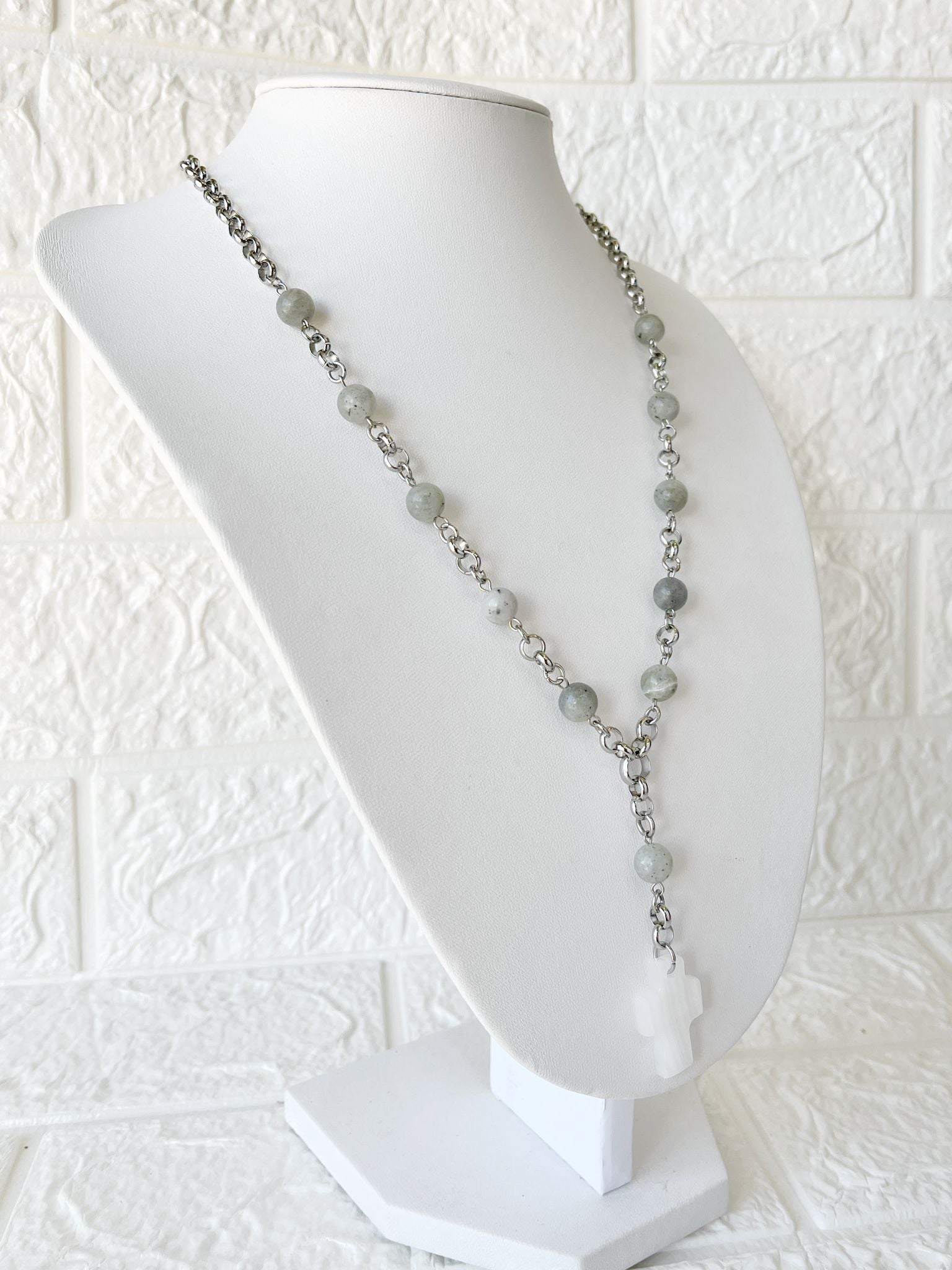 Collar Denario de Acero, Piedra Natural Labradorita y Ónix Blanco