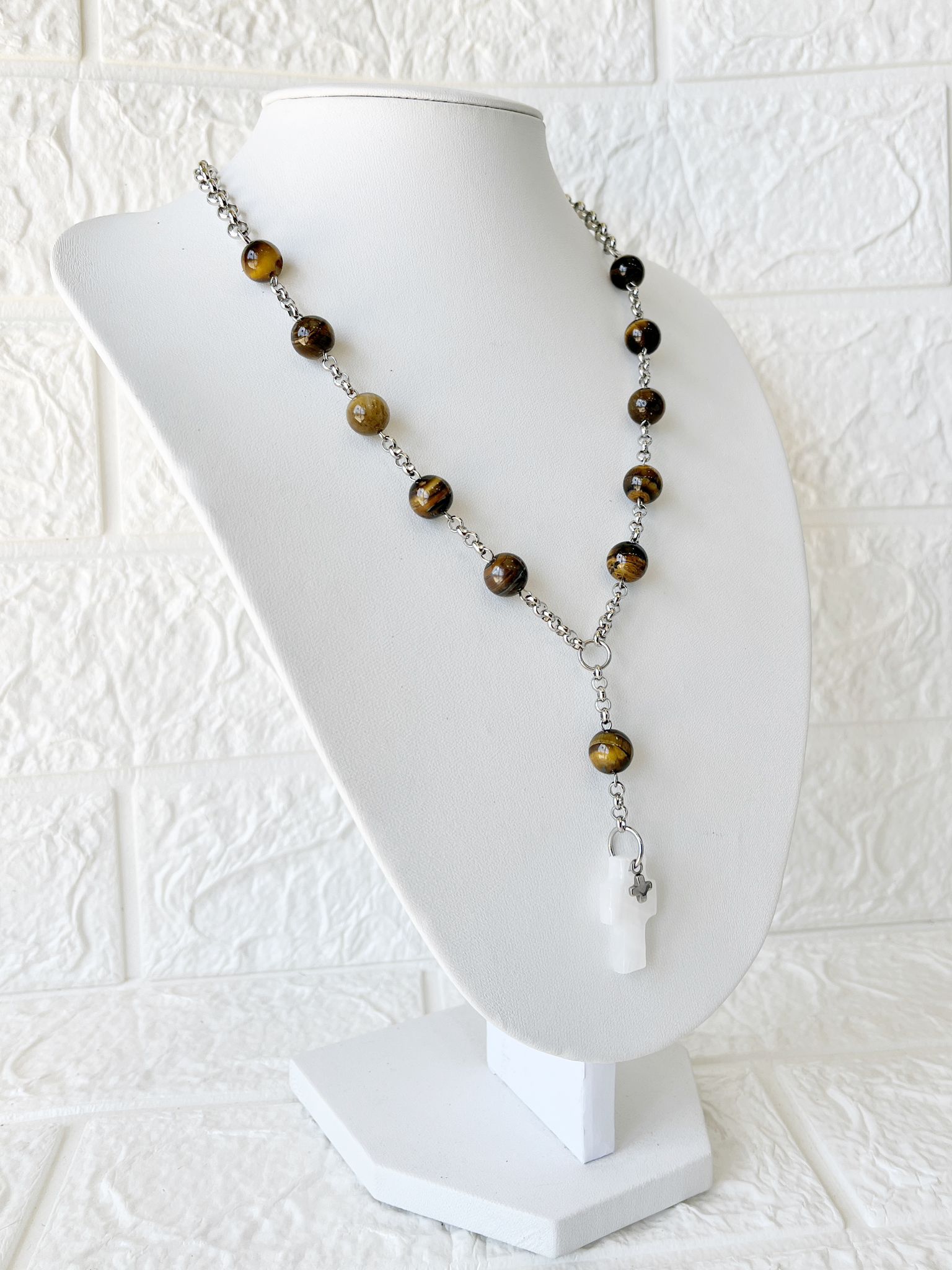 Nota: Collar Denario de Acero Quirúrgico, Piedra Ojo de Tigre y Ónix.