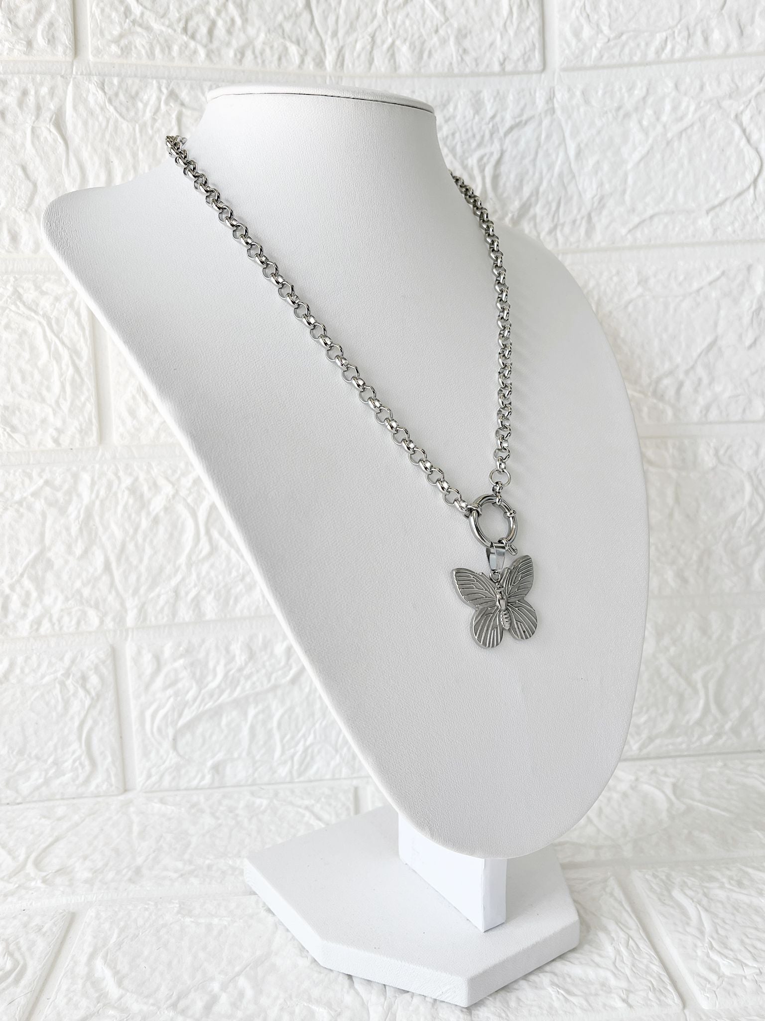 Modelo Conjunto cadena de Acero Quirúrgico con dije Mariposa y Nudo Marinero.