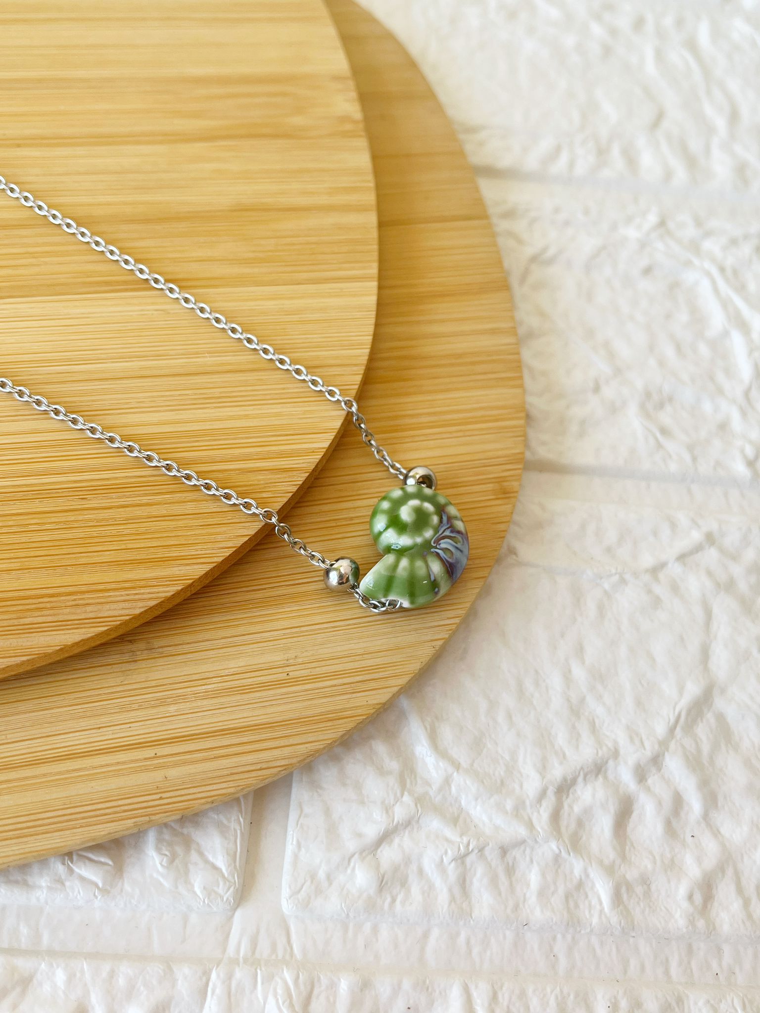 Modelo Conjunto de Acero Quirúrgico con dije de cerámica Caracola.