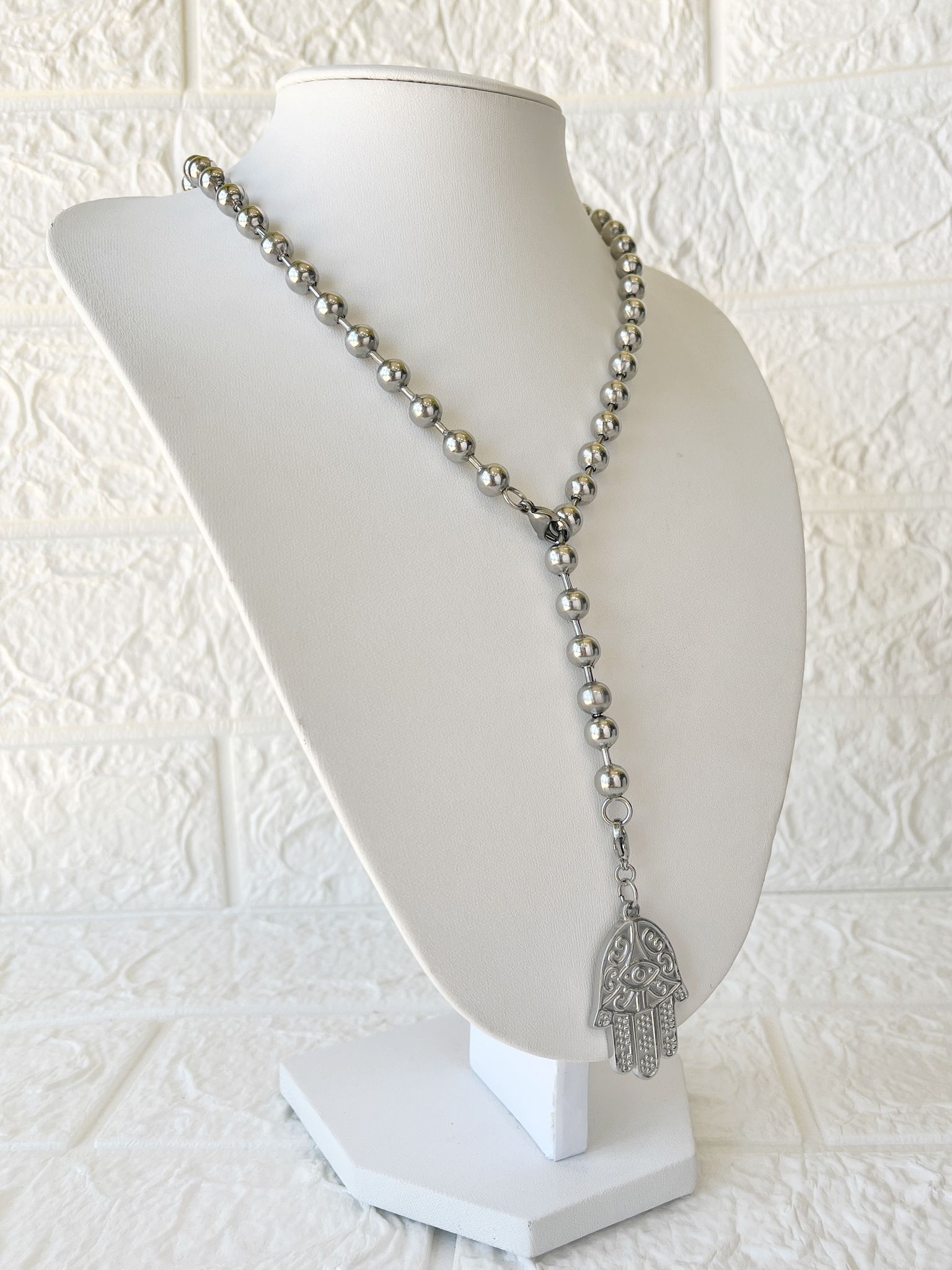 Conjunto de Acero Quirúrgico y dije Mano de Fátima (o Hamsa).