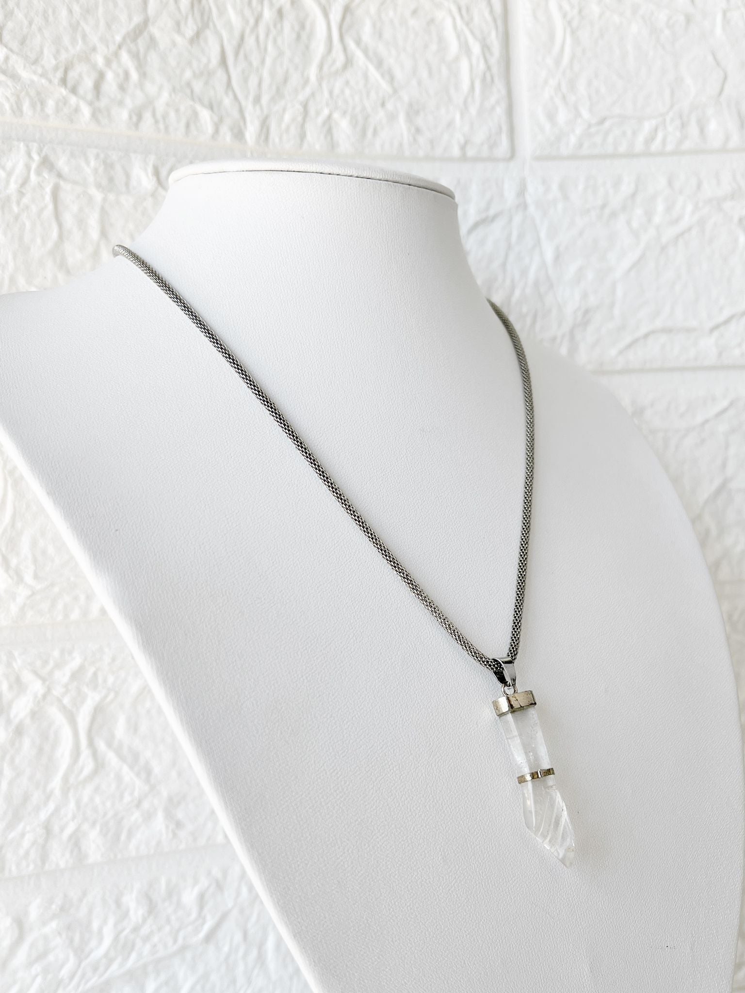 Conjunto de Acero Quirúrgico y dije Mano de Piedra Natural Cuarzo (engarce alpaca).