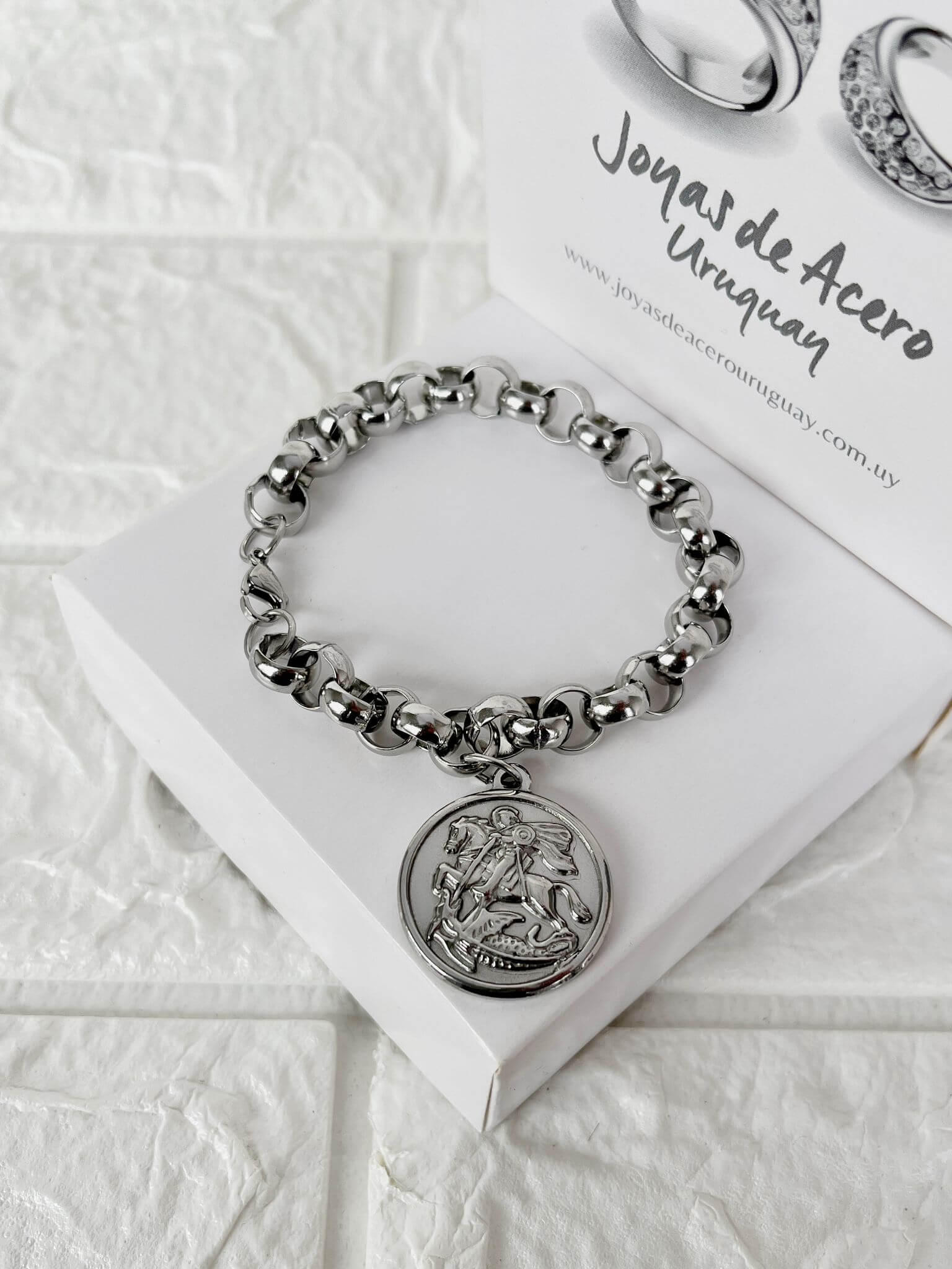 Pulsera de Acero Quirúrgico con dije San Jorge.