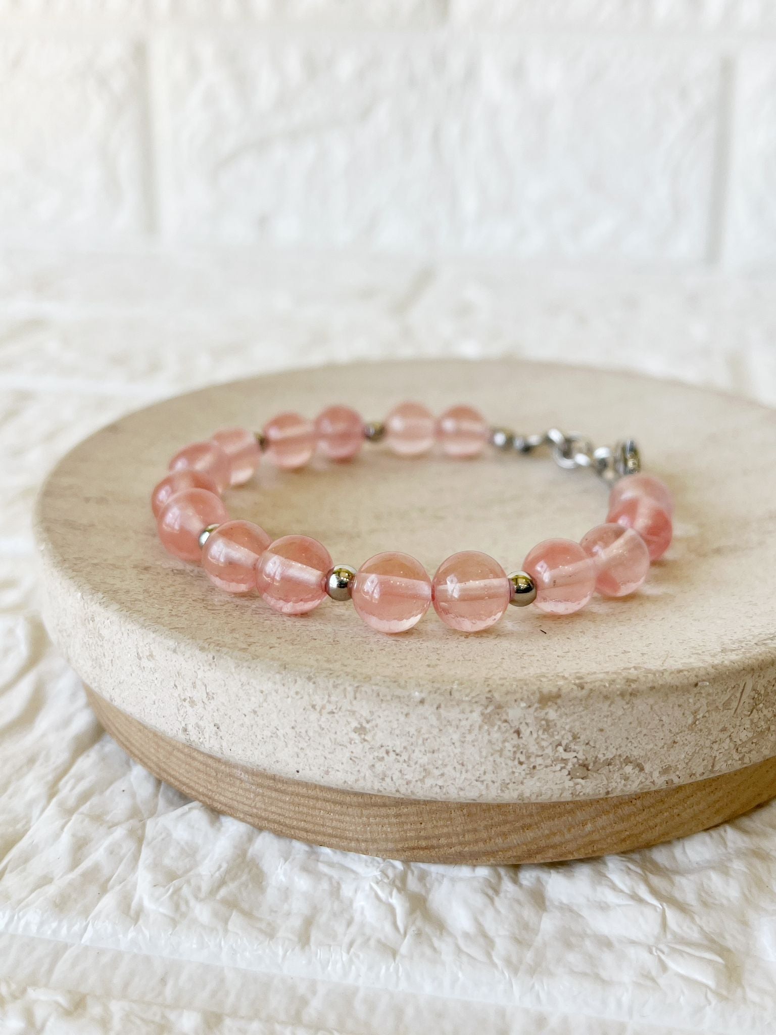 Pulsera de acero quirúrgico con piedras naturales Cuarzo Cherry.