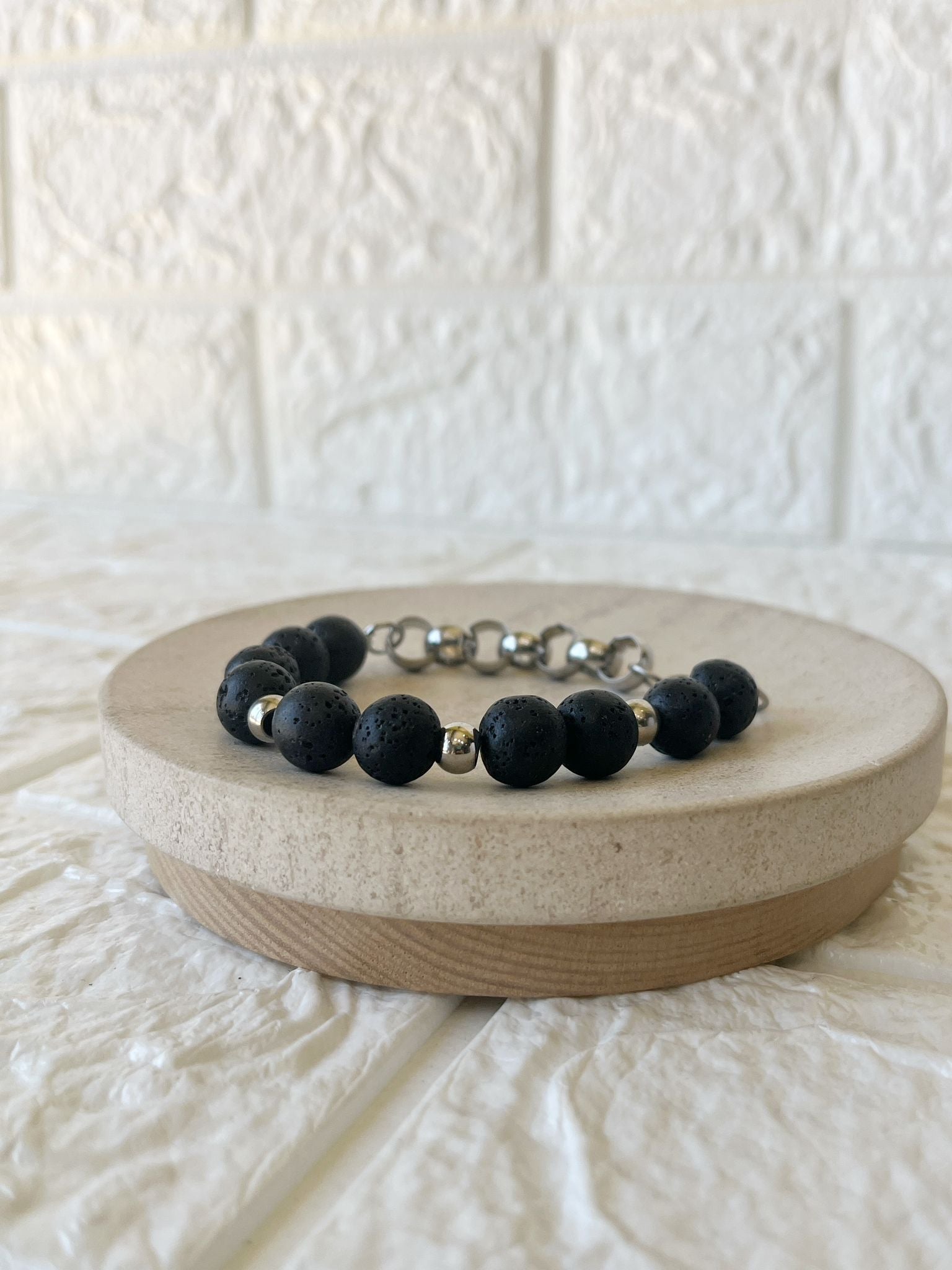 Pulsera de Acero Quirúrgico y Piedra Volcánica