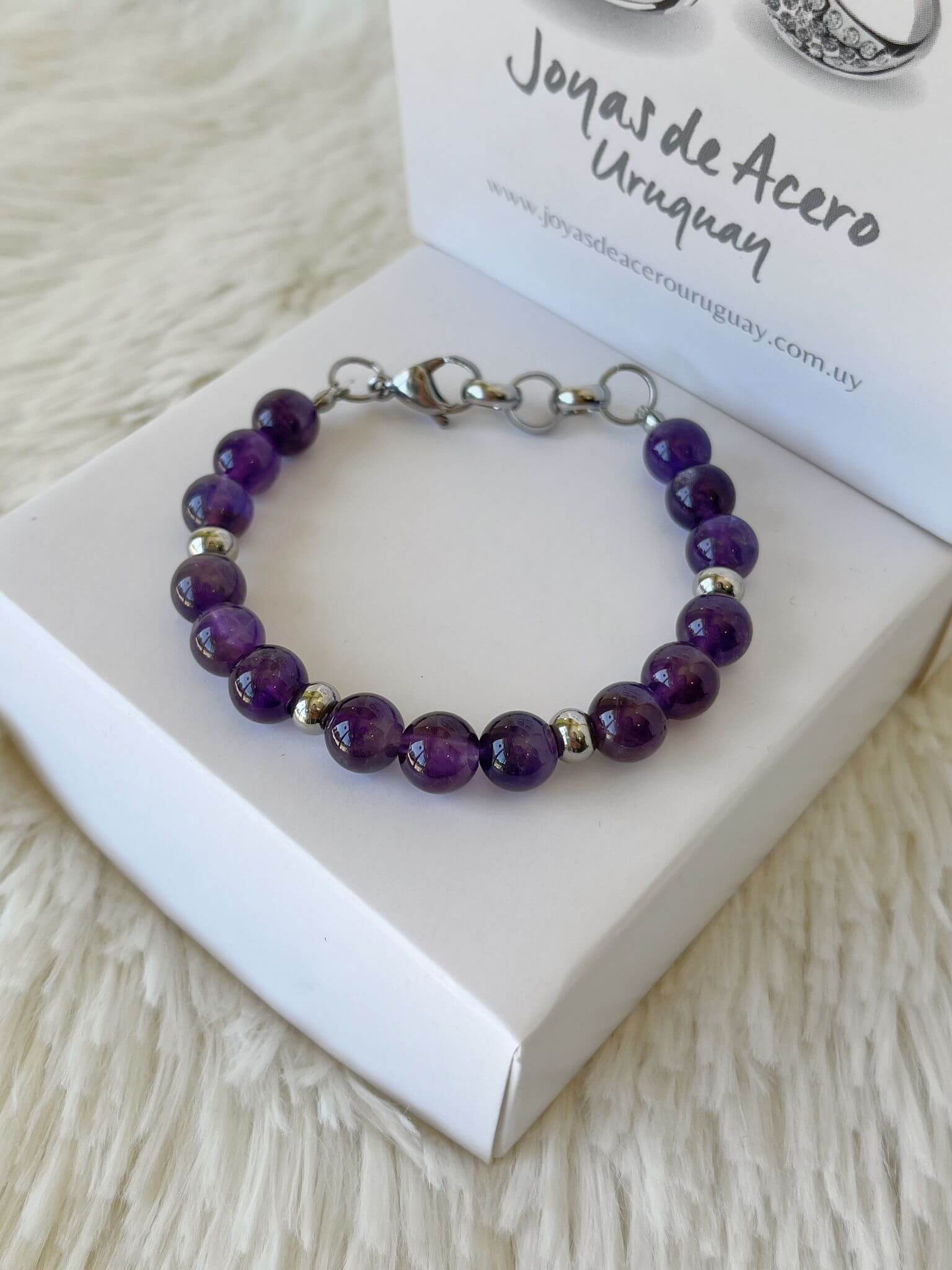 Material: Acero quirúrgico y piedras naturales Amatista